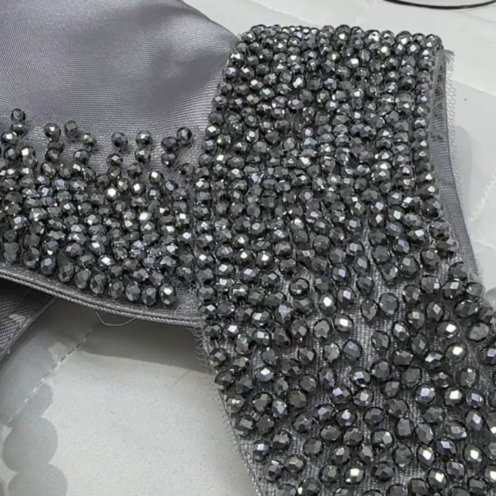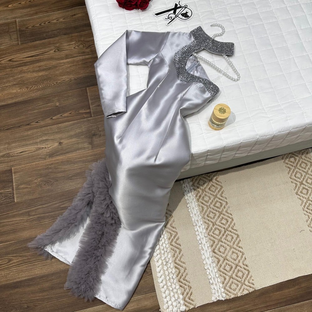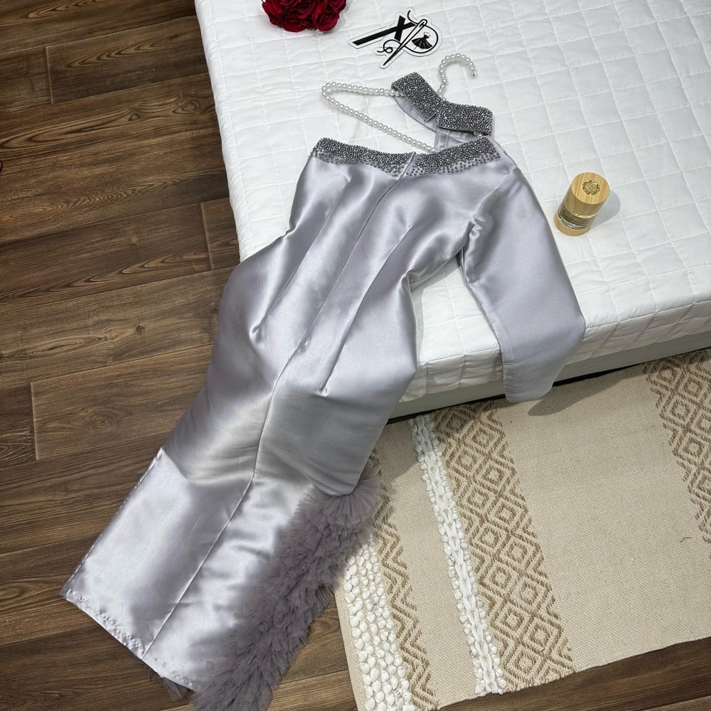 له فتحة ساق جانبية من الامام مزينة بهامة التل الناعم الكثيف