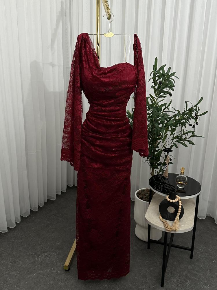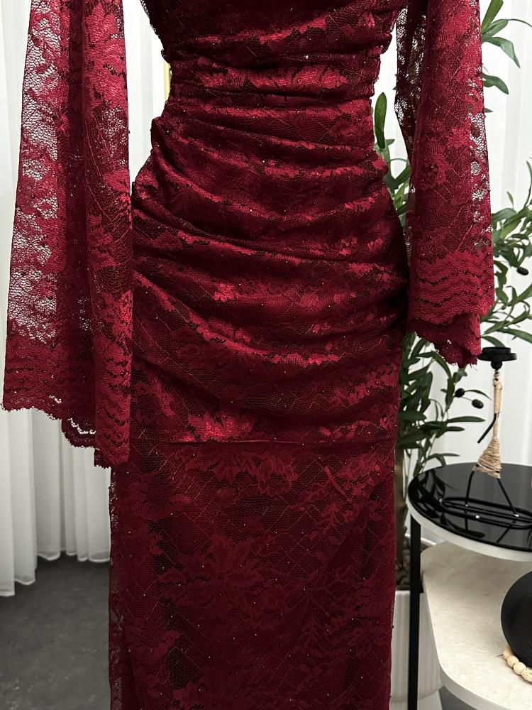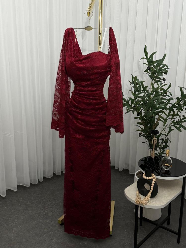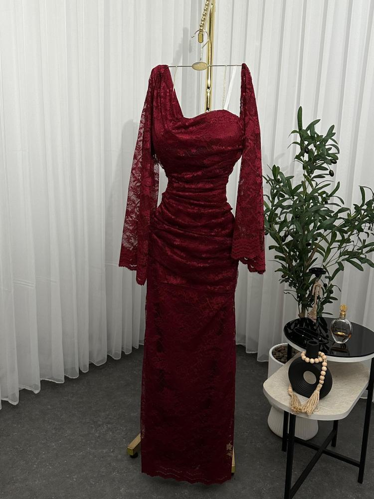 فستان دانتيل برقندي بأكمام شفافة يمنحكِ إطلالة ساحرة وفاخرة. يجسد هذا الفستان الفاخر التصميم الأنثوي الجذاب، حيث تم صنعه من الدانتيل المفصص الذي يضفي لمسة من الأناقة والرقي. اللون البرقندي الداكن يبرز جمال الفستان، مما يجعله خيارًا مثاليًا للمناسبات الخاصة والسهرات، حيث ستصبحين محط أنظار الجميع.