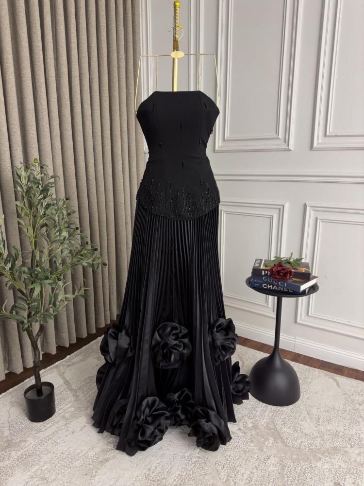 تألّقي بإطلالة أنثوية فاخرة مع هذا الفستان الأسود المصمم بتفاصيل مترفة تبرز جمالك بكل جرأة وأناقة.